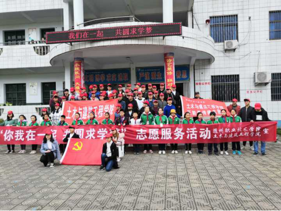为全面贯彻习近平总书记关于青年工作的重要思想,树立基层党建的鲜明导向,推动团的组织力明显提升,建设当代大学生思想政治教育工作阵地, 3月22日上午8:00,随州职业技术学院土木与建筑工程学院学工党支部全体教师、学生党员、入党积极分子、团员干部和部分学生一行60余人赴安居镇第三小学开展“我们在一起 共圆求学梦”志愿服务活动。