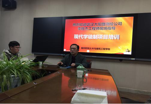 3月25日,土木与建筑工程学院教学与科研办公室组织召开了现代学徒制项目专题培训会议,学院党委书记黄达同志、党委副书记张华丽同志,并邀请了校企合作单位武汉太阳路测绘公司的李胜杰老师及学院全部的中层干部参加了会议培训。