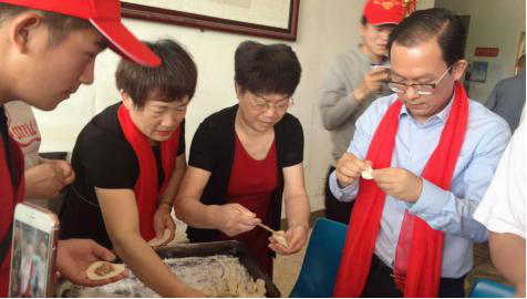 通过互谈,了解到老人们的晚年生活状况,师生们的到来弥补了他们心灵上的缺憾。志愿者们还带来了食材和工作人员一起包饺子,大家一边话家常,一边分工合作,忙得热火朝天。看着形状各异、满载爱心的饺子呈现在大家的面前,老人们开心的笑了。包饺子活动进一步拉近了大家之间的距离,增强了老人们对师生志愿者的认同感,使他们感受到了党的关怀和生活的温暖。