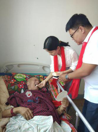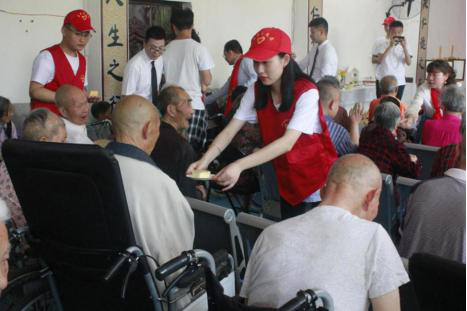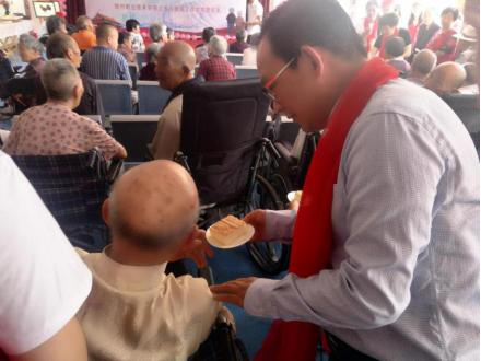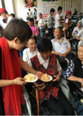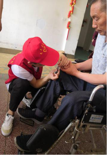文艺表演后师生志愿者们为老人们分发了新鲜的水果、蛋糕。随后,志愿者们深入到老人们的宿舍,有的为他们修剪指甲,有的为他们梳头捶背,还有的给行动不便卧床的老人们喂食物,和他们聊天谈心,细心询问他们在敬老院里的日常生活,了解老人们的需求,志愿者们也向老人们介绍学校的学习生活和工作情况。