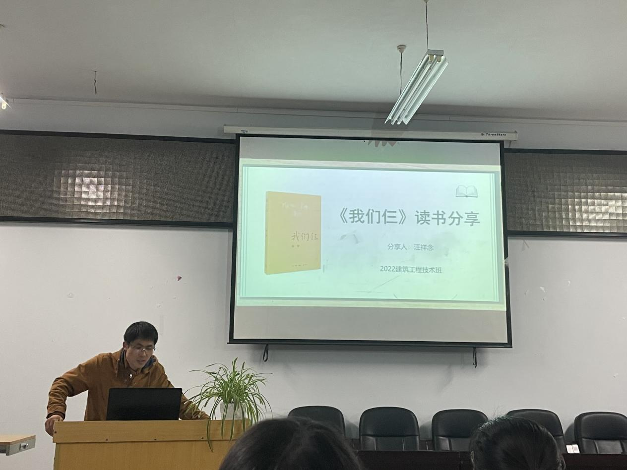 11月18日下午,土建学院在1220会议室举行了“聚焦二十大,奋进新征程,读书谱辉煌”月度阅读成果分享展示会。教学与科研办公室汪祥念老师作为教师代表,向参会全体师生分享了自己的读书感悟。