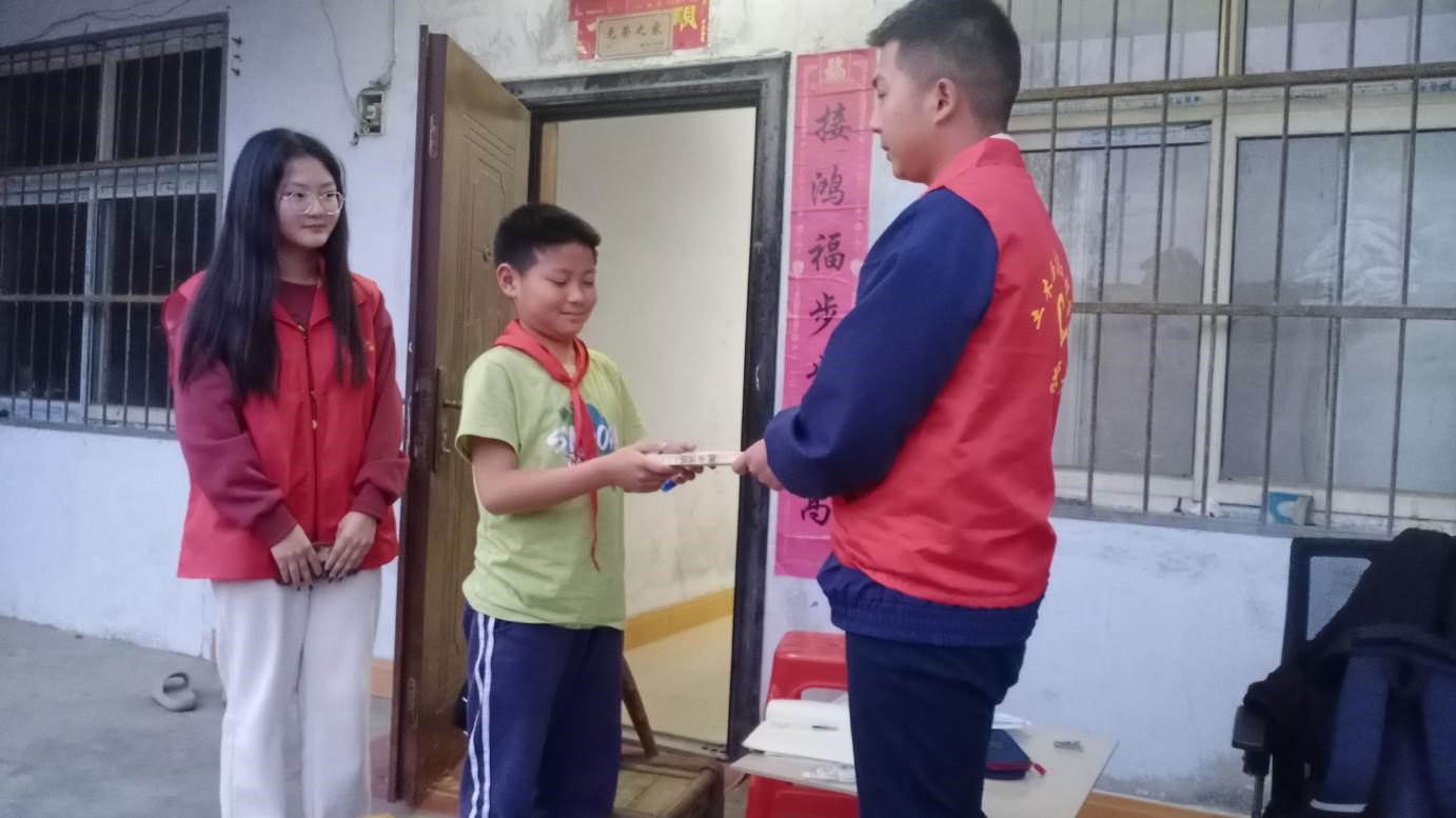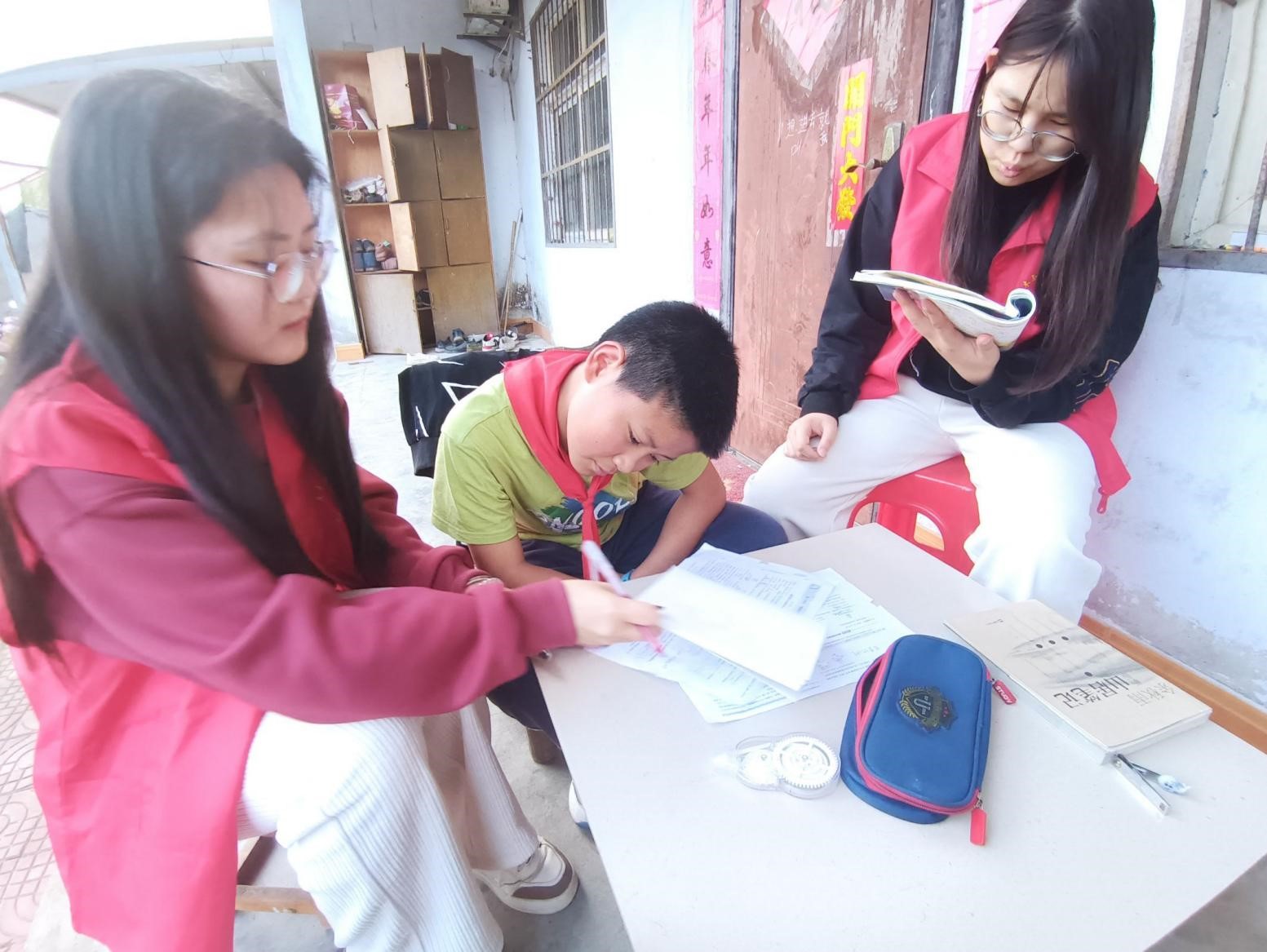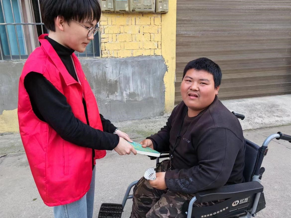 我院志愿者陪伴社区学生完成教学任务并赠送书本等读物,希望能通过这些爱与陪伴的互动传递社会对他们的关心,帮助培养他们积极向上的心态,让这些“星星的孩子”不只是闪烁在自己的世界,也能够在这个充满爱的社会中闪闪发光。