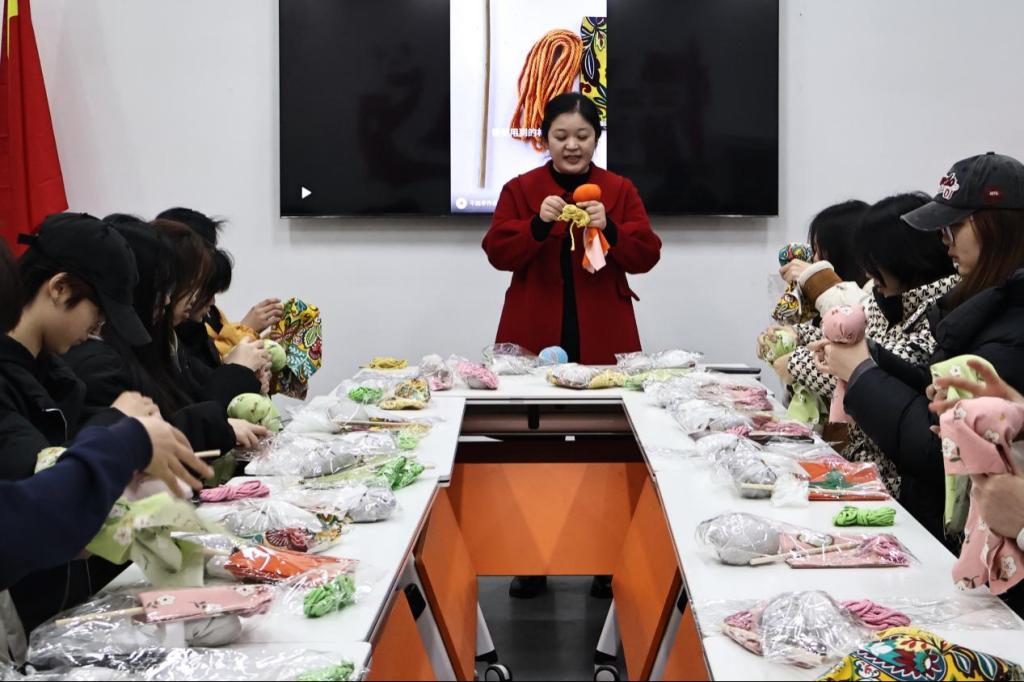 3月7日下午,“艾草芬芳”非遗手作体验在“一站式”学生社区展开。师生共同学习传统艾草养生锤制作技艺,从棉布缝制、艾草配伍到锤柄装饰,大家亲手制作了30余件兼具实用与美感的作品。活动现场欢声笑语不断,师生们在动手实践中不仅感受到了传统手工艺的魅力,还深入了解了中医药文化的博大精深。通过此次活动,传统养生智慧悄然浸润了师生们的心田。