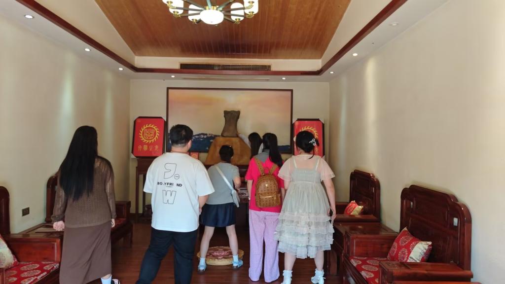 参观结束后,团队与景区负责人刘经理就岩画文化传承展开深度洽谈。岩纹π队详细介绍了“长江上游五省岩画绘本创作”项目,从田野调查、数字化采集到艺术化呈现的全流程规划,引发刘经理强烈共鸣。她仔细浏览电子版岩画样稿后,高度评价项目对活化文化遗产、普及史前文明的重要意义。双方随后围绕岩画主题研学课程开发、沉浸式体验活动设计等方向展开头脑风暴,并达成资源共享、协同创新的合作共识。洽谈尾声,刘经理赠予团队《随州岩画探源》专著,为后续研究与创作提供珍贵参考。