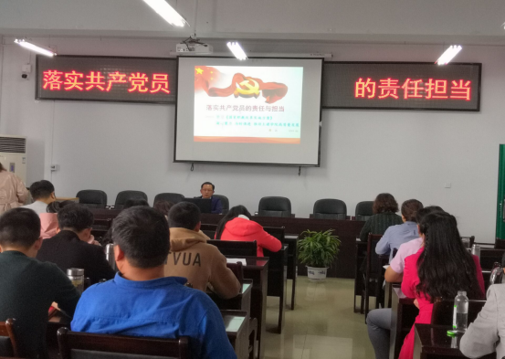 最后,黄达书记提出新时代职教人落实共产党员的责任与担当,须做到八条准则:1、坚定理想、坚守信念;2、加强学习、提高素质;3、尽职尽责、实干苦干;4、以生为本、教书育人;5、要改革创新、攻坚克难;6、转变作风、反对“四风”;7、廉洁自律、遵纪守法;8、要以身作则,率先垂范。