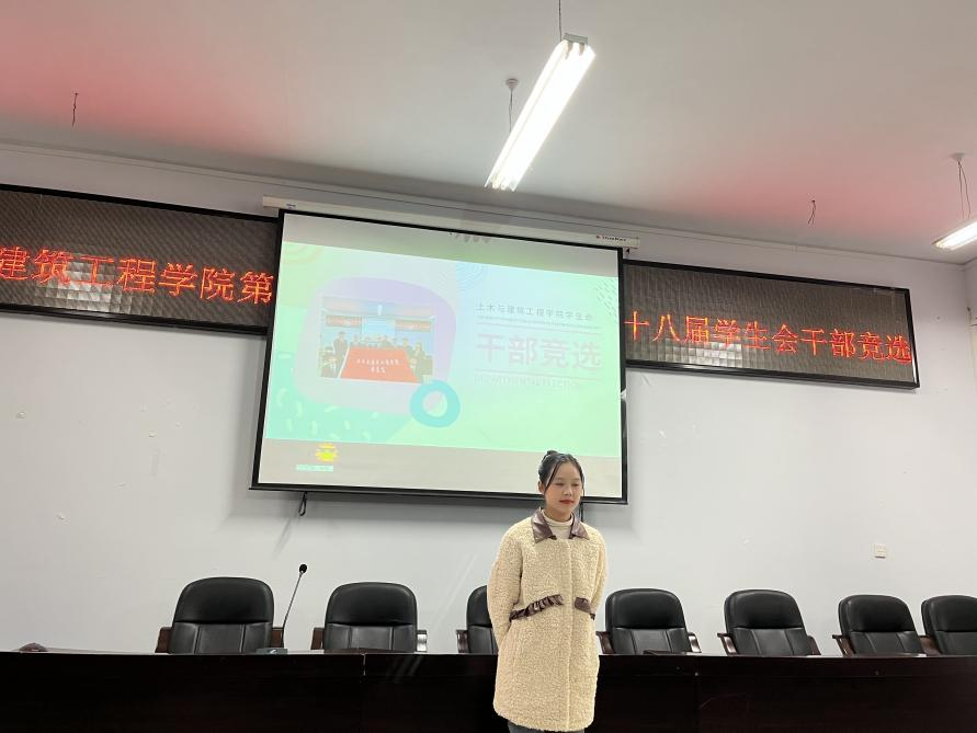 10月10日下午4:30,土木与建筑学院在思成楼1220举行第十八届学生会干部竞选,本次竞选由党总支副书记张丽、学工办主任徐慧子、团总支书记童晗、就业科科长黄梓怡及第十七届学生会干部出席并担任评委工作。