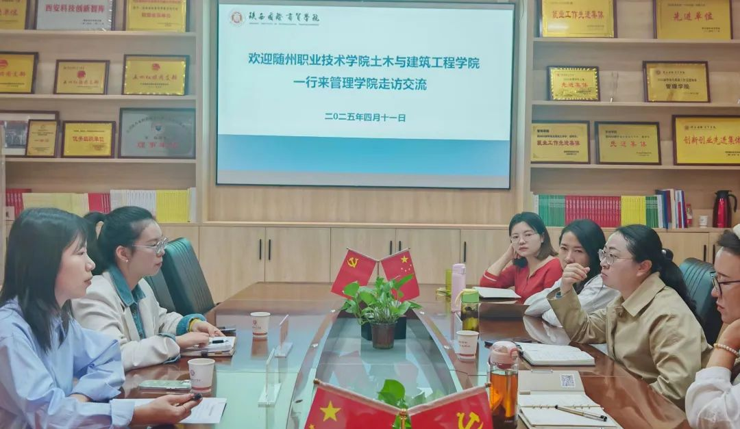 (通讯员:王钰冰 童晗)2025年4月11日上午,随州职业技术学院土木与建筑工程学院建筑教研室主任王钰冰、教学与科研办公室副主任童晗一行赴陕西国际商贸学院管理学院开展走访交流。双方以“互学互鉴、共谋发展”为主题,围绕本科建筑类专业培养人才定位和目标、学生优质就业、智能建造发展等议题展开深入探讨。此外,双方就优化课程体系、共建教学资源等具体问题交换意见,并初步达成师资互访、实训基地共享等合作意向。