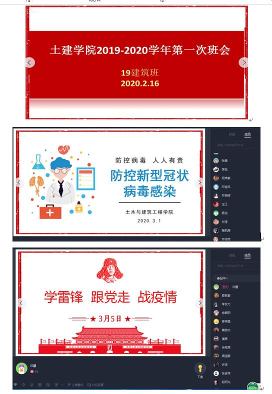 在疫情防控的重要关头,为响应教育部“停课不停学”的号召,也为了确保每周的课程及学生管理工作正常有序进行,土木与建筑工程学院从216日起各年级各班每周日下午1600CC-talk直播间开启线上主题班会。