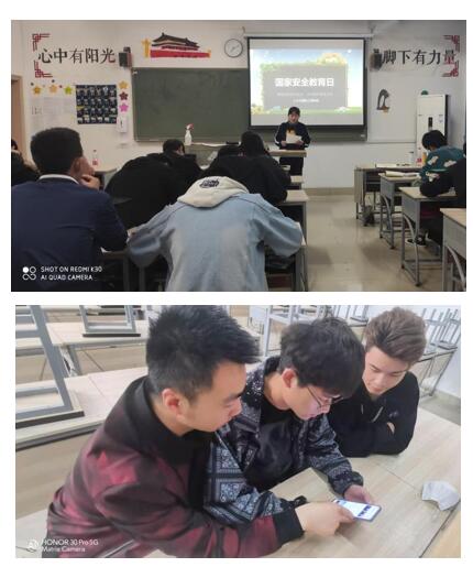 为加强学管队伍培训体系,利用线上课堂,组织学生线上参观山东威海全国首个以总体国家安全观为主题的教育基地,观看学习案例、历史事件、省委国安办组织录制的国家安全教育示范课程,并且要求在自己的朋友圈留言发表学习课程后的感想,并且找了与主题相关的宣传图片张贴朋友圈给身边的亲朋好友起到警示作用。