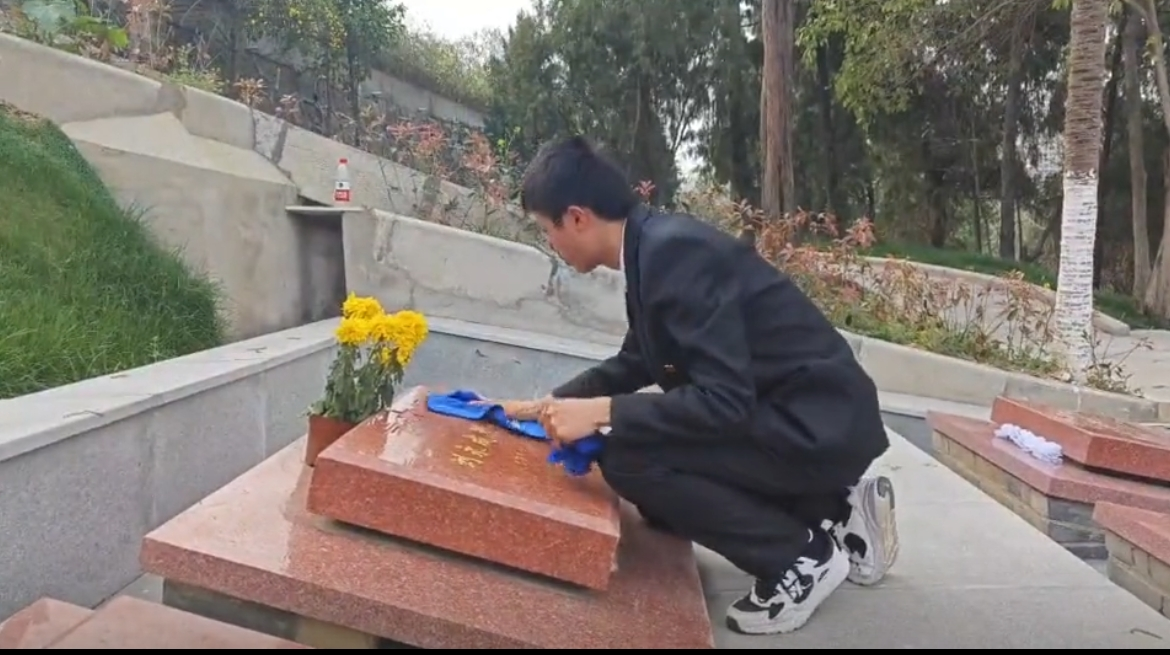 宣誓完毕,学生拿起准备好的工具做清洁工作,学员们一丝不苟得擦拭着烈士墓碑,清扫花坛。随后,学生干部依次进行献花默哀鞠躬,缅怀革命先烈。