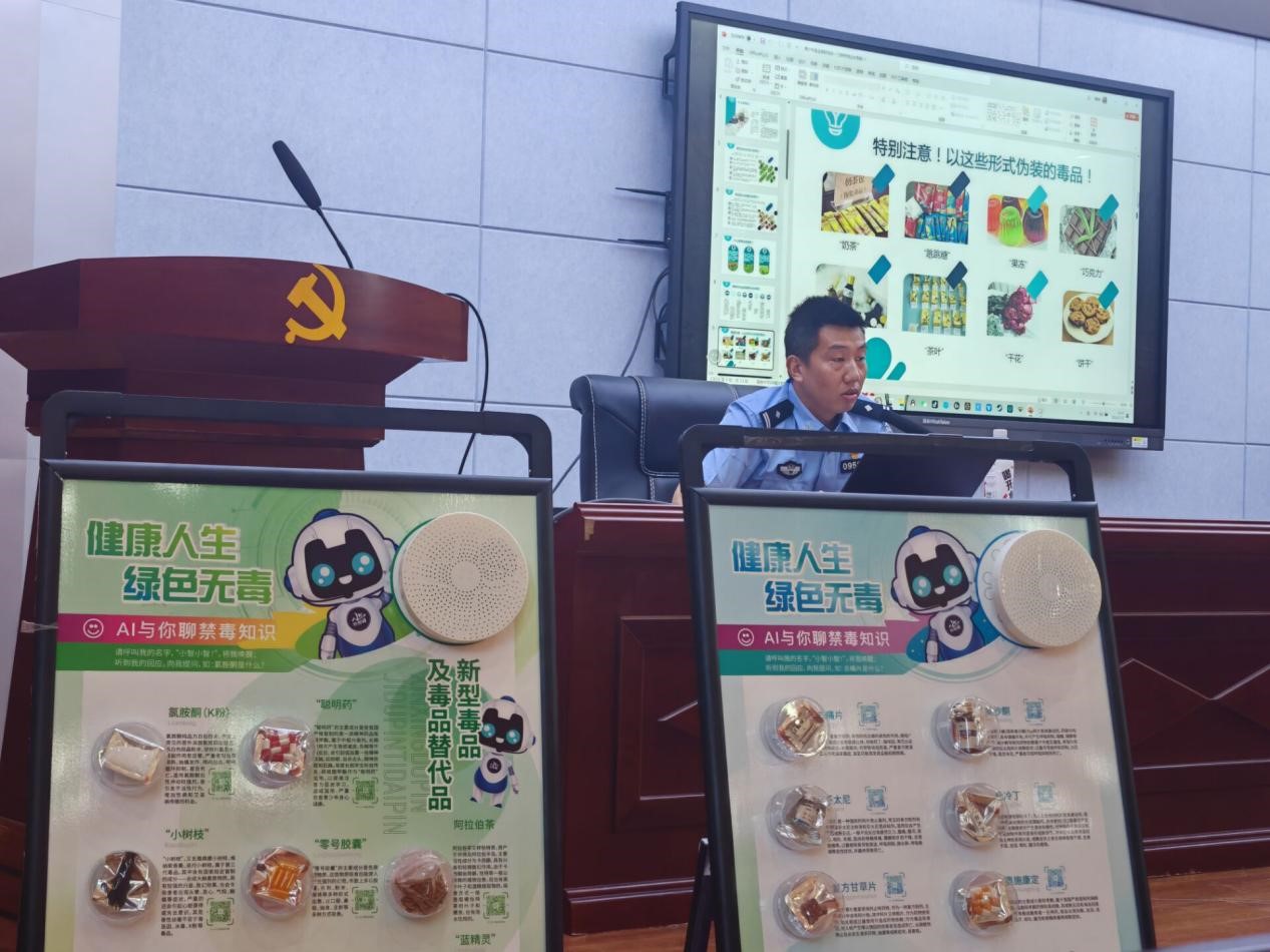 同时,兰涛警官从三大吸毒心理——好奇、侥幸、排解负面情绪为师生深度剖析为何人们会沾染毒品,在宣传展台上,陈列了多种毒品模型或样本,便于全校师生对各类毒品进行了解和辨识。志愿者向参会学生赠送宣传手册,并从常见的新型毒品种类、如何抵制毒品危害、相关法律规定等方面现场开展宣讲教育。