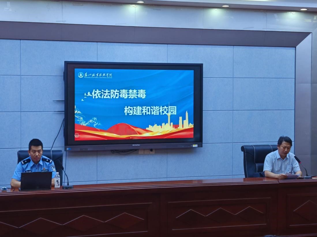 随州市公安局禁毒支队办公室主任兰涛警官结合禁毒宣传教育短片,为我校师生讲解了禁毒历史、毒品危害、吸贩毒案例、禁毒法律法规、如何拒绝毒品侵害等方面知识。
