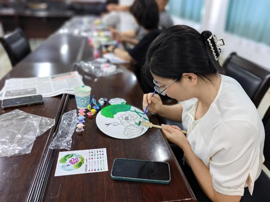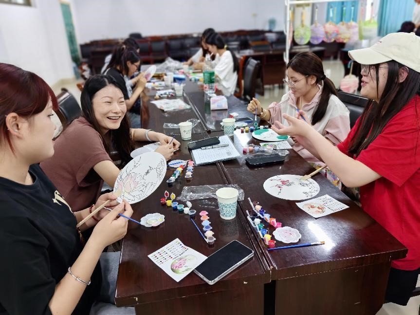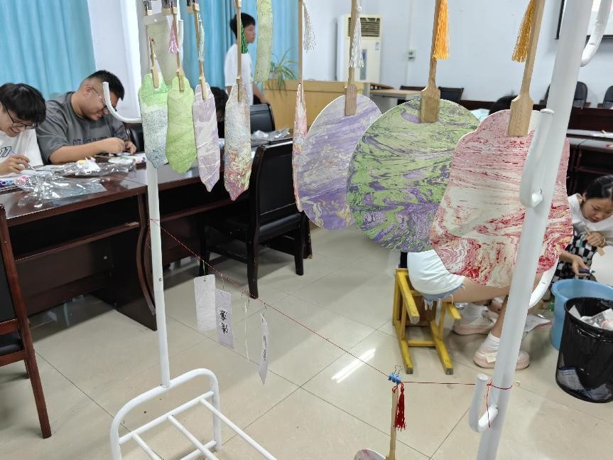 以漆为笔 以水为墨,活动伊始,一扇精彩的手作漆扇创作拉开了序幕。夜合庭前繁华盛,漂漆小扇匠人心,师生亲自体验手作漆扇的制作,在制作过程中,感受中国传统工艺之美。