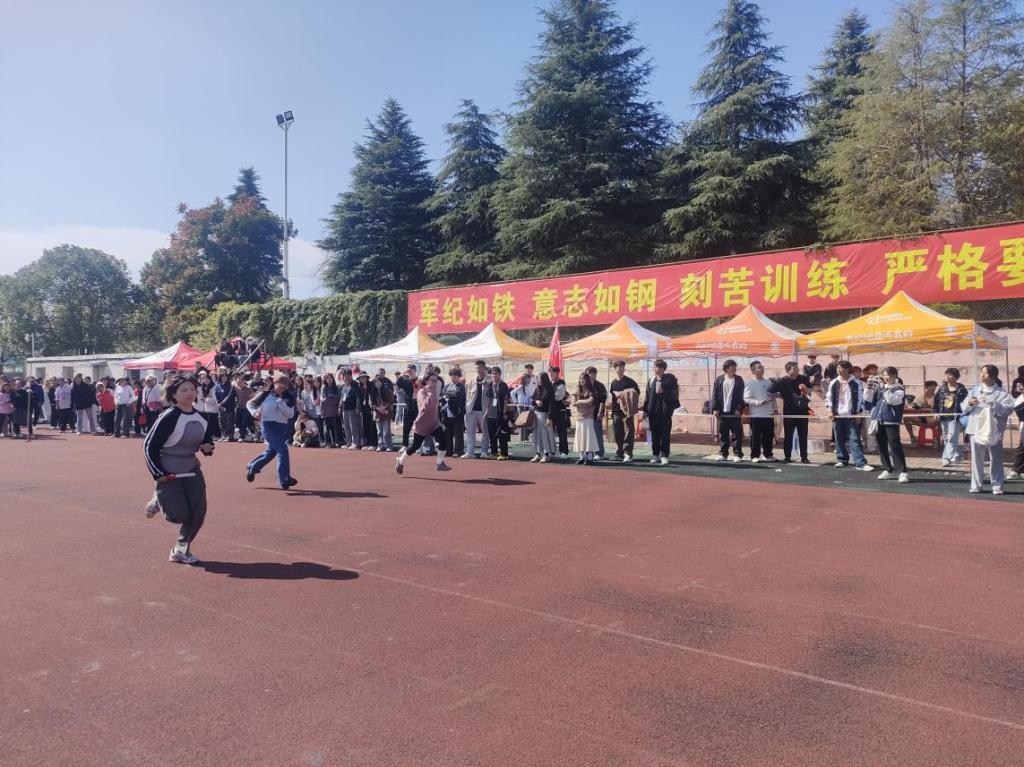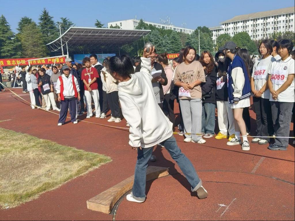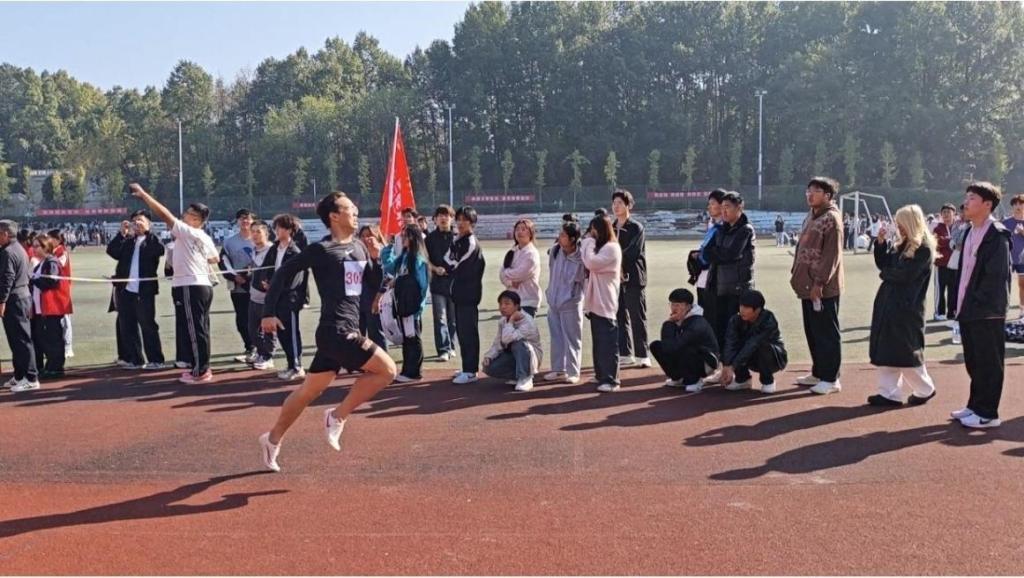 开幕式后,运动会的各项比赛项目紧锣密鼓地展开。短跑、长跑、跳高、跳远、铅球等赛项依次上演,运动员们在赛场上你追我赶,顽强拼搏。跑道上,运动员们如离弦之箭,奋力冲向终点;在跳高比赛中,选手们展现了矫健的身姿和坚定的毅力,不断挑战自我。跳远项目同样精彩,选手们一次次助跑起跳,腾空而起,勇敢挑战自己的极限。在观众的加油声和欢呼声中,每一次跃起,都是对自我能力的突破和肯定。铅球比赛中,运动员们展现了出色的力量与技巧,比赛场面精彩纷呈,激动人心。运动员在赛场上奔跑的同时学生会成员也在陪伴着奔跑,体现了建工学子团结一心的精神。