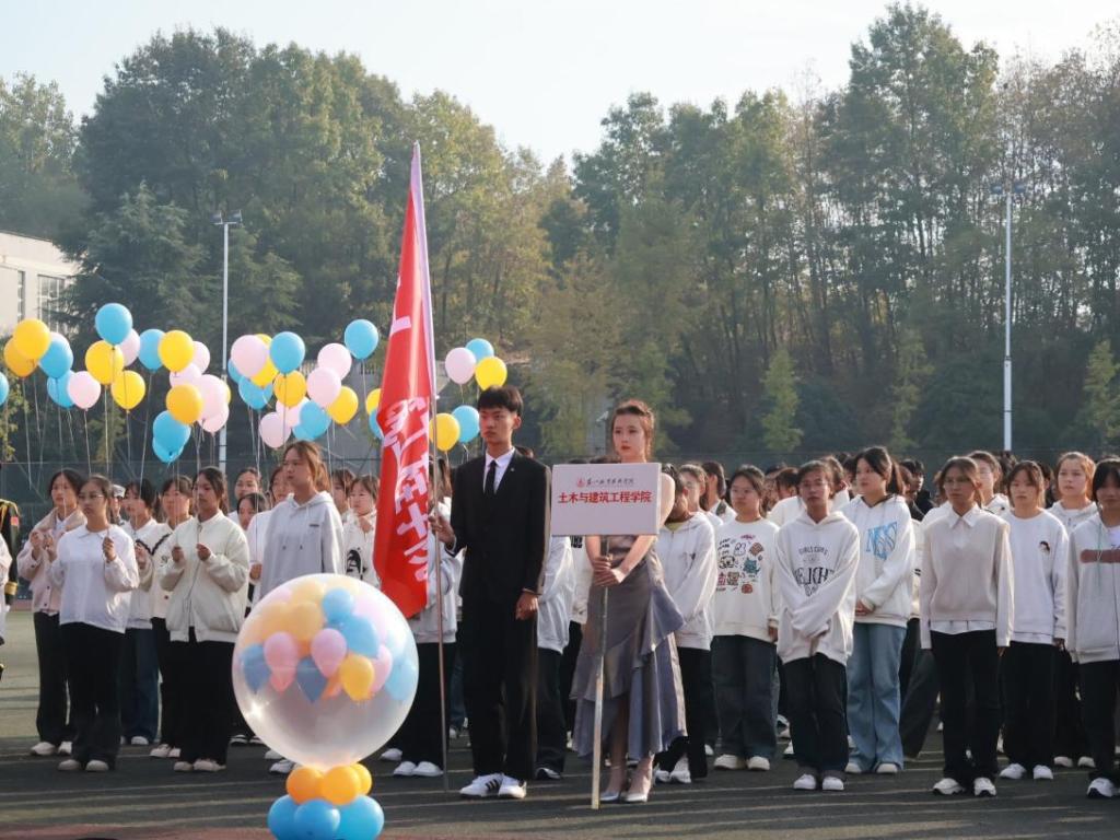 24日上午8点30分,运动会开幕式在庄严的国歌声中正式拉开序幕。建工学院代表队迈着整齐的步伐入场,喊着气势昂扬的口号“土承天下,强国有我”。学生们用铿锵有力的步伐和热情洋溢的笑容,展现了新时代青少年的朝气与风貌。