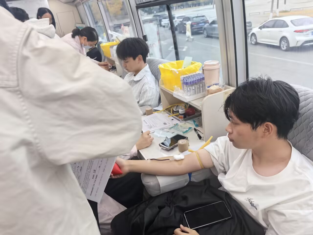 活动现场,三位来自少数民族学子格外引人注目——土家族的张鵬飞与吴浪、藏族的田曲旦,他们率先卷起衣袖,用“青春热血献真情,点滴汇聚暖人间”的朴实行动,展现了新时代青年对“奉献、友爱、互助、进步”志愿精神的生动诠释。在他们的带动下,师生纷纷加入献血队伍,让巧稚楼前的献血车成为了传递民族大爱的温暖驿站。