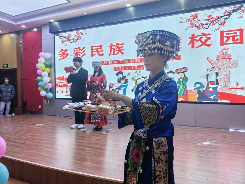 (通讯员:徐慧子)为深化民族团结进步教育,铸牢中华民族共同体意识,促进校园多元文化交融,2025年12月3日晚,土木与建筑工程学院在云桂楼报告厅举办“多彩民族 和美校园”民族团结主题教育活动。学院师生齐聚一堂,通过民族美食体验与文艺节目展演,共同感受中华民族文化的丰富多彩,营造了团结友爱、和谐共融的校园氛围。
