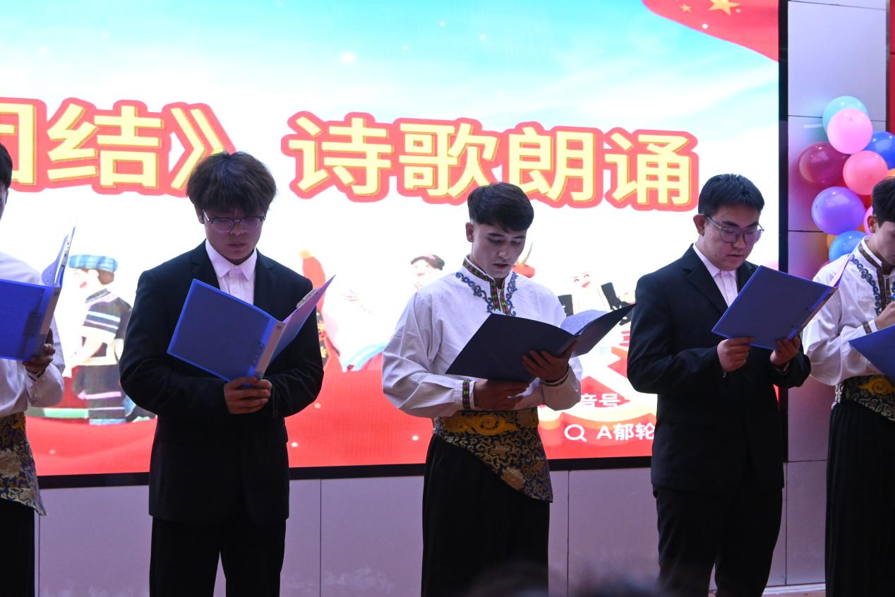 文艺表演环节精彩纷呈。藏族舞、维吾尔族舞、土家族舞等节目,生动展现了不同民族的独特风情与艺术魅力;诗歌朗诵《民族团结》、《青春中国志》及手势舞《国家》,表达了师生们深厚的家国情怀;辅导员参与的串烧舞蹈,则体现了师生同乐的融洽关系。最后,全场大合唱《我和我的祖国》将活动推向高潮,激昂的歌声抒发了对祖国统一和民族团结的坚定信念。