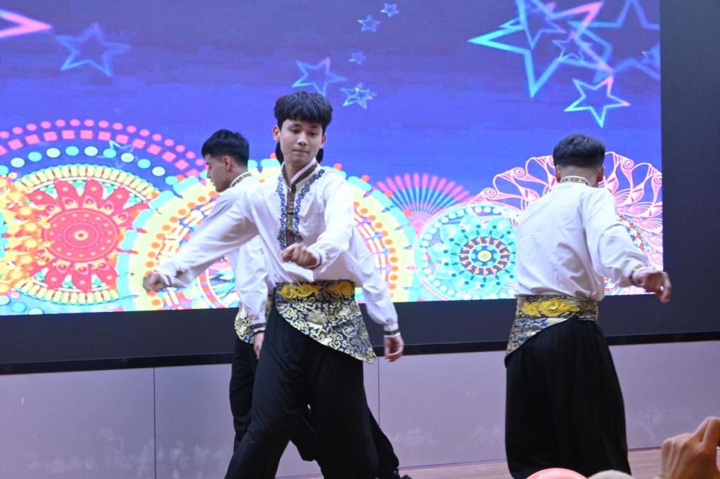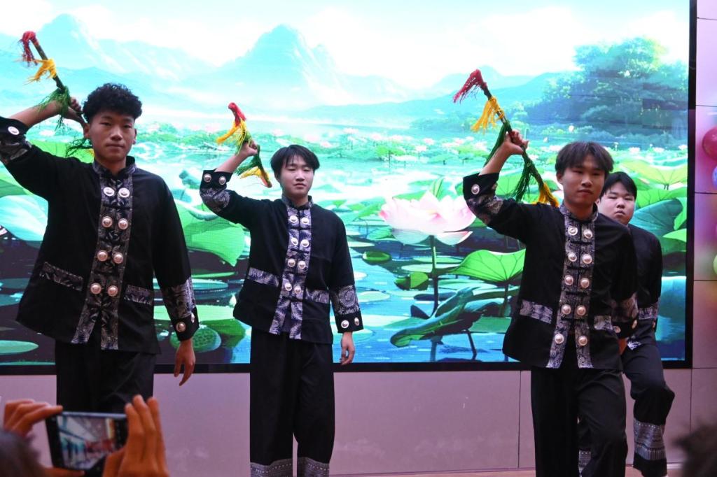 活动在激昂的《醒狮》表演中拉开序幕。随后的“民族同心宴”环节,现场设置了多个民族美食展台,蒙古族奶食、维吾尔族烤馕、壮族五色饭等各具特色,由各民族学生担任讲解员,介绍美食背后的文化内涵。师生们品尝交流,增进了对不同民族文化的了解。
