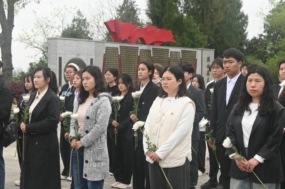 活动当天,全体人员于 8:30在思成楼前集合,统一列队前往陵园。在庄严肃穆的氛围中,师生们重温革命先辈浴血奋战、为国捐躯的峥嵘岁月,深刻感悟革命精神与信仰力量。