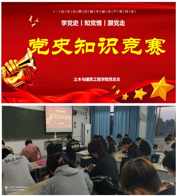 4月18日晚,土木与建筑工程学院党总支组织在校学生以班级为单位开展了 “学党史、知党情、跟党走”为主题的党史知识竞赛活动,积极营造浓厚的党史学习氛围,全院近140名同学参加。