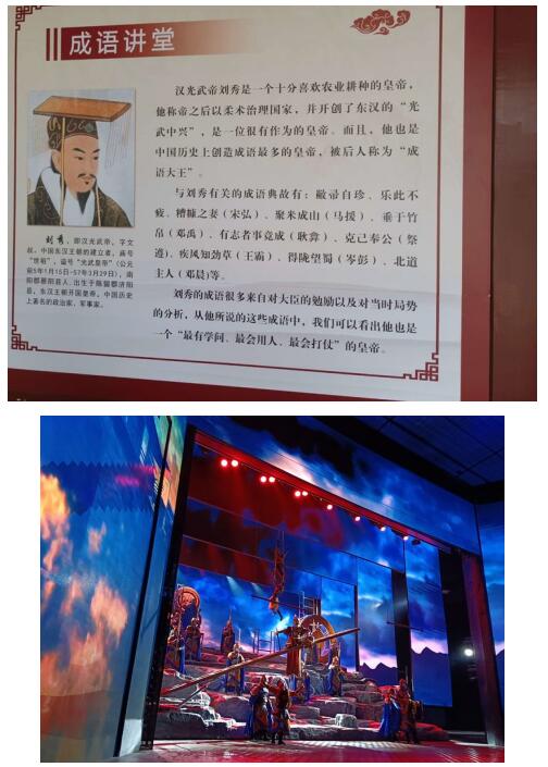 随后,老师们进入园区全方位观摩和体验中国汉文化的博大精深:“丝路传奇”让老师们近距离感受现代科技带来的视觉震撼,了解丝绸之路的缘起与当今中国一带一路战略的远大目标;“光武登基大典”殿内装饰奢华,处处雕龙画凤,尽显皇家恢宏大气;“光武帝校场点将”斗志昂扬的马术表演气势磅礴更是扣人心弦,让人赞不绝口;古法造纸、枣阳粗布制造技艺、国家级非遗文化遗产剪纸……观摩体验更是让老师们对中国古人的智慧和灿烂古代文明惊叹不已;最后,欣赏了由杨澜导演的大型情景剧《寻梦大汉•汉颂》,通过龙飞白水、乐舞相和、维天有汉、墨舞文华、汉和天下、宗脉家国六慕情景剧,感受到沉浸式舞台所绽放的英雄柔情、九州天下、金戈铁马、盛世风华…