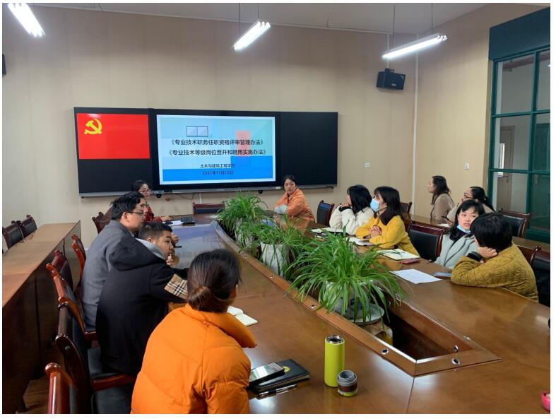 为有序开展2021年教师专业技术职务任职资格申报工作,将新修订的评审管理办法学习到位、宣传到位、落实到位,11月8日,土木与建筑工程学院组织全体教师对《随州职业技术学院专业技术职务任职资格评审管理办法(试行)》(随职院党[2021]16号)进行了全面深入的学习和讨论。
