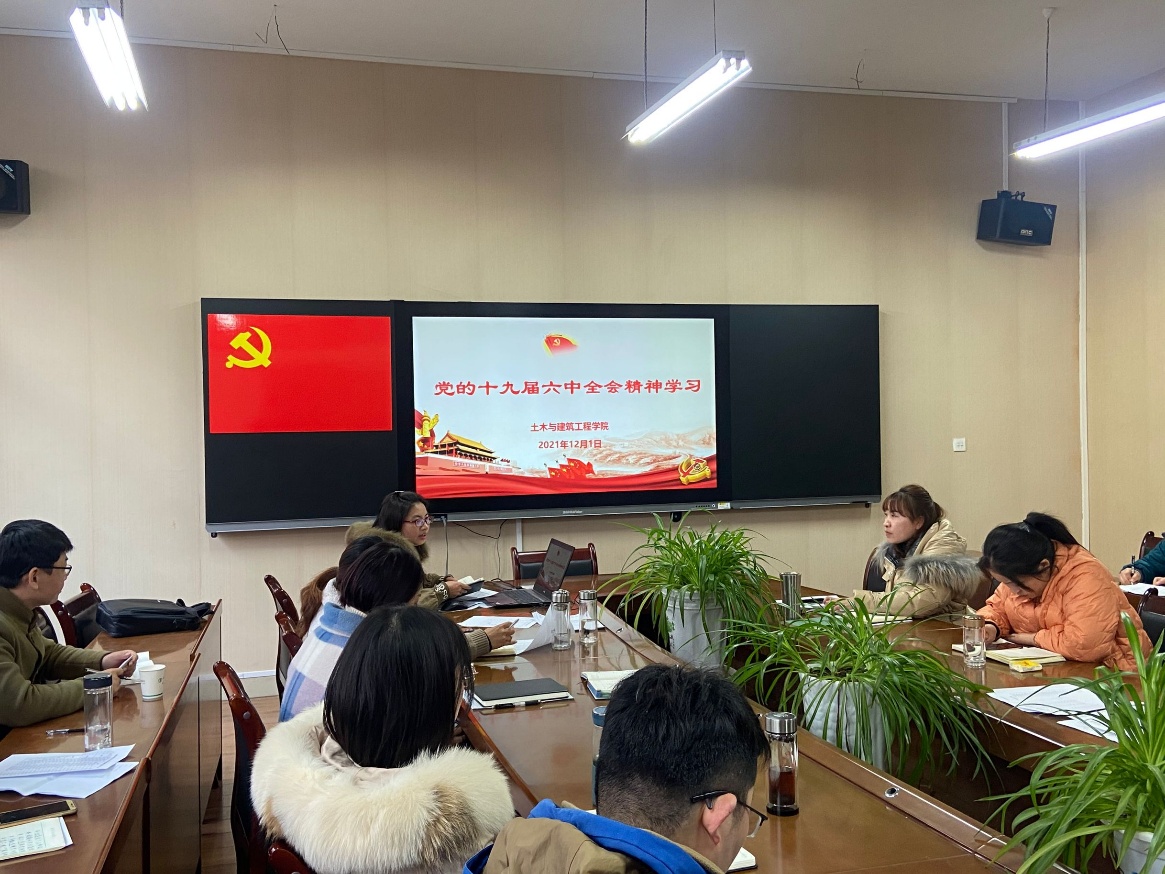 为深入学习宣传贯彻党的十九届六中全会精神,引导全校师生把思想和行动统一到全会精神上来,12月1日,土木与建筑工程学院组织全体教师和入党积极分子开展了十九届六中全会精神学习活动。