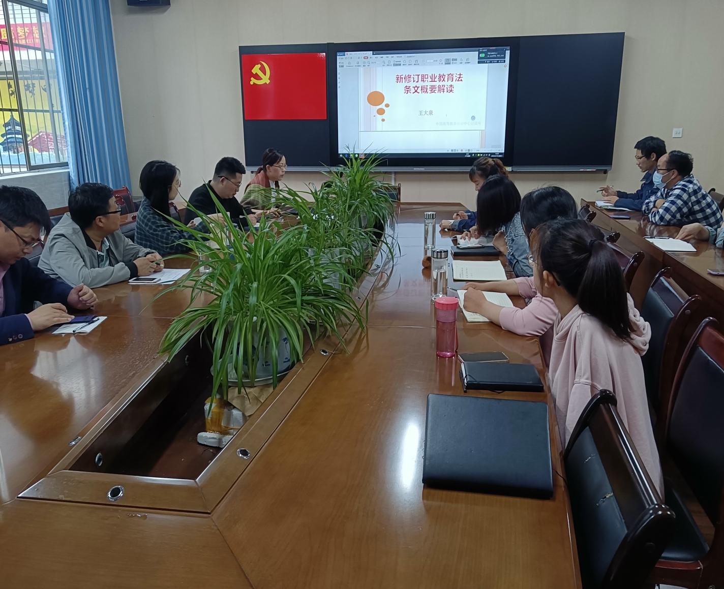 学院组织教师线上收听收看教育部职业教育与成人教育司司长陈子季等领导和专家所作的专题报告,感受到新的把职业教育与普通教育摆在同等重要的位置,体现党和国家对职业教育的重视。教学副院长张丽讲解《新修订职业教育法条文概要解读》普法专题讲座;学工办组织班主任在学生中进行《职业教育法》宣讲;各班利用主题班会、宣传展板、校园广播等大力宣传《职业教育法》,使学生认识到发展职业教育是国家人才战略发展的需要,让学生们进一步增强了对自身发展的认同感、荣誉感。职业教育和普通教育,国家同等重视,让“劳动光荣、技能宝贵、创造伟大”成为新的时代风尚。