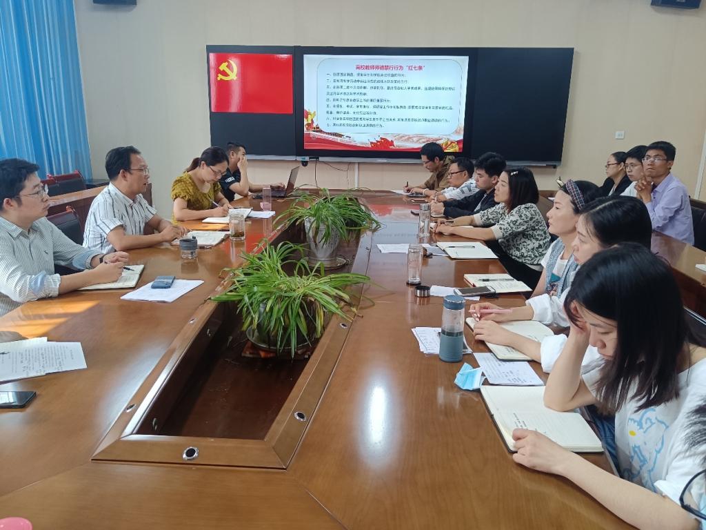 副书记张丽系统解读了《随州职业技术学院2022年党风廉政建设宣传教育月活动方案》、《教育部关于建立健全高校教师道德建设长效机制的意见》(教师〔2014〕10号),并结合新学期加强教师的师德师风警示教育和意识形态工作监督检查,通报《教育部公开曝光第十批7起违反教师职业行为十项准则典型案例》,组织全体教师对照《教育部公布高校教师师德禁行行为“红七条”》进行自我检视。