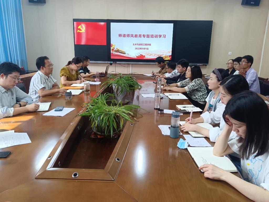 为营造忠诚干净干事作风和廉洁清朗教风学风,提高全体师生的拒腐防变意识,大力弘扬清廉守正、担当实干之风,9月1日下午,土木与建筑工程学院办公室组织全体教师开展师德师风教育专项培训。