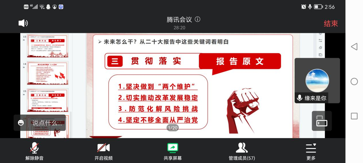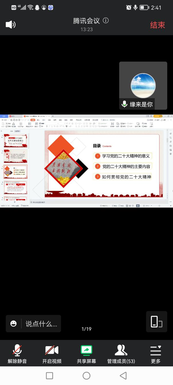 12月16日下午,副校长邹厚亏面向土木与建筑工程学院宣讲党的二十大精神,我院全体党员教师和学生干部、入党积极分子近60人参与专题学习。