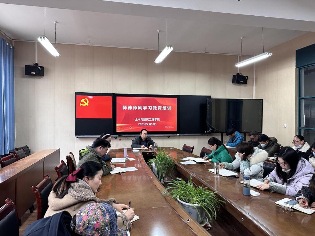 2月10日,土木与建筑工程学院全体教师在1107会议室集中进行了师德师风学习教育活动。党总支副书记、纪检委员张丽组织结合“教育部对高校教师具有警示教育意义的师德禁行行为‘红七条’”一一逐条解读,并结合高校教育教学特点,提醒每名老师在自己的教育教学岗位和个人言行中时刻进行自我检视,牢牢把握意识形态阵地的话语权和主导权,教学工作支部和学生工作支部纪检委员加强工作监督,办公室、教研室要利用各种会议和平台开展多层次多形式的师德师风学习教育活动,同时要对师德师风典型案例和先进榜样加强宣传学习,营造风清气正和阳光向上的教育教学环境。