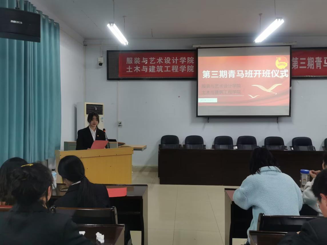 (通讯员 童晗)为进一步培养和造就一批经由马克思主义中国化的最新成果武装、具有较高思想政治素养的年轻马克思主义者,信仰坚定、德才兼备的新时代新青年,3月16日下午16:30分,服装与艺术设计学院、土木与建筑工程学院第三期青年马克思主义培训班开班仪式在思成楼1220教室顺利举行。服装与艺术设计学院党总支副书记张亦飞老师、团总支书记何瑞玉老师;土木与建筑工程学院党总支副书记张丽老师、团总支书记童晗老师;服装与艺术设计学院22级辅导员庞樊随老师和黄紫薇老师以及第三期青马班全体学员及助教参加本次开班仪式。本次开班仪式由刘籽亚主持。