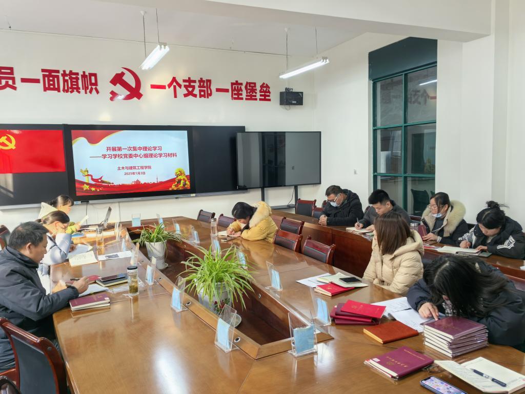 (通讯员:朱颜)1月3日下午,土木与建筑工程学院党总支组织开展2025年第一次集中理论学习,学习学校党委中心组理论学习材料。会议由综合办主任周阳主持,全体党员教师参加。